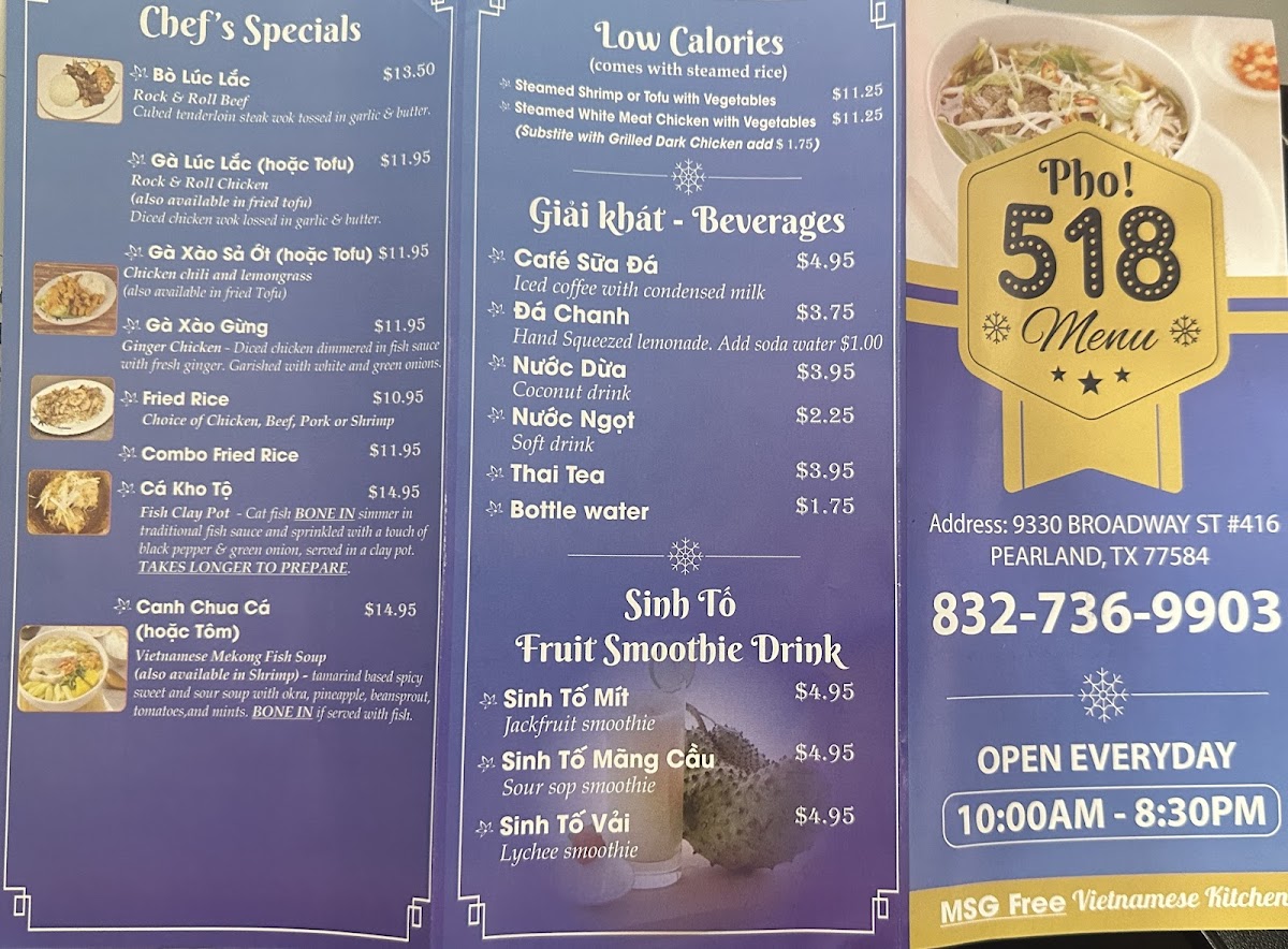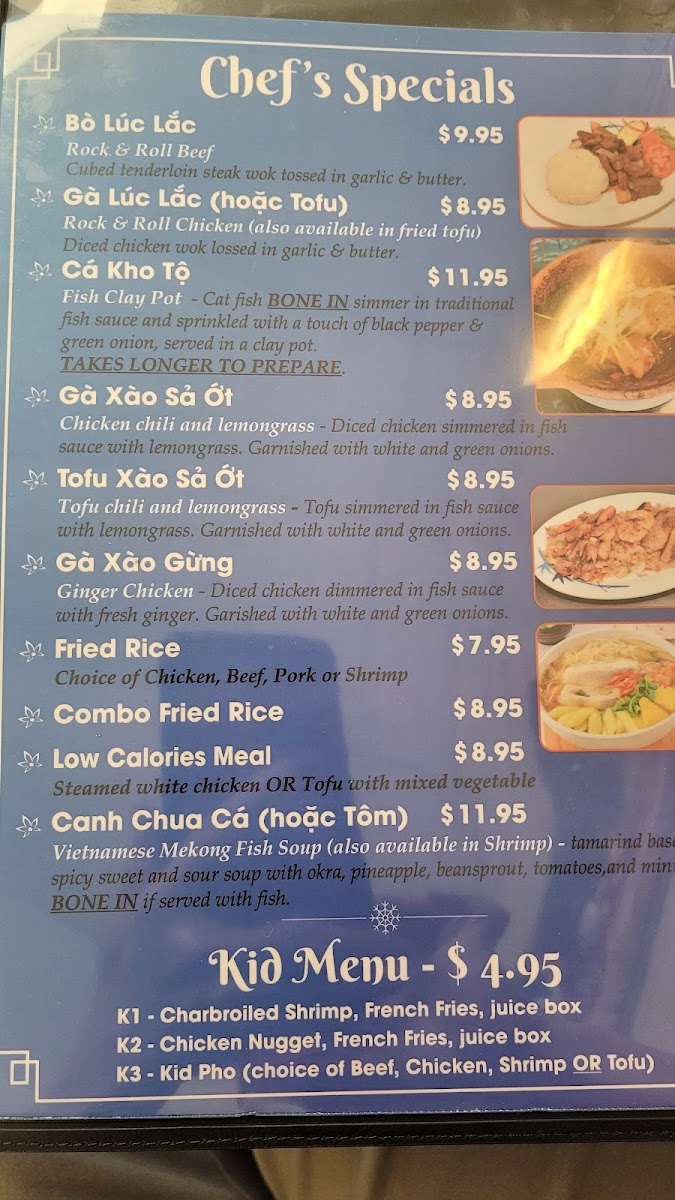 For those seeking something special, the Com Chien Dac Biet offers a delightful combo fried rice with grilled chicken, pork, and shrimp. Each dish is crafted with care, evident in the fragrant broth of their renowned pho, which customers rave about for its authentic taste and tender meats.